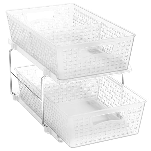 The Simple Houseware 2 Tier Organizer shines with its sliding basket, making it incredibly easy to access items stored at the back. Its dividers are perfect for keeping things organized and tidy. However, the YouCopia RollOut Caddy is no slouch with its customizable compartments and added bonus of wheels, which is a unique feature that significantly aids in accessibility, especially under the sink. While testing, I found the YouCopia to be particularly useful in my kitchen for storing cleaning supplies, allowing me to wheel the caddy out effortlessly. In contrast, the Simple Houseware excelled in the bathroom where vertical space was limited but urgently needed.
